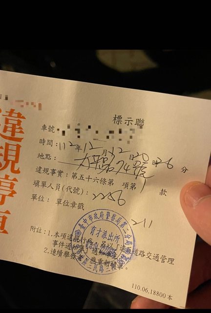 那時候是傍晚6點多,等我大約過一小時多要回來要牽機車,就被開違規單了~~