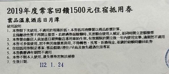 標題[徵求] 雲品2019常客回饋住宿抵用卷