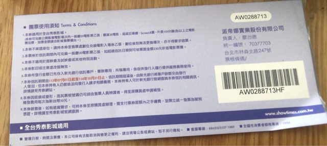 秀泰電影票 220/張 共8張 面交地點:東區,大里或郵寄 有任何問題可以站內信