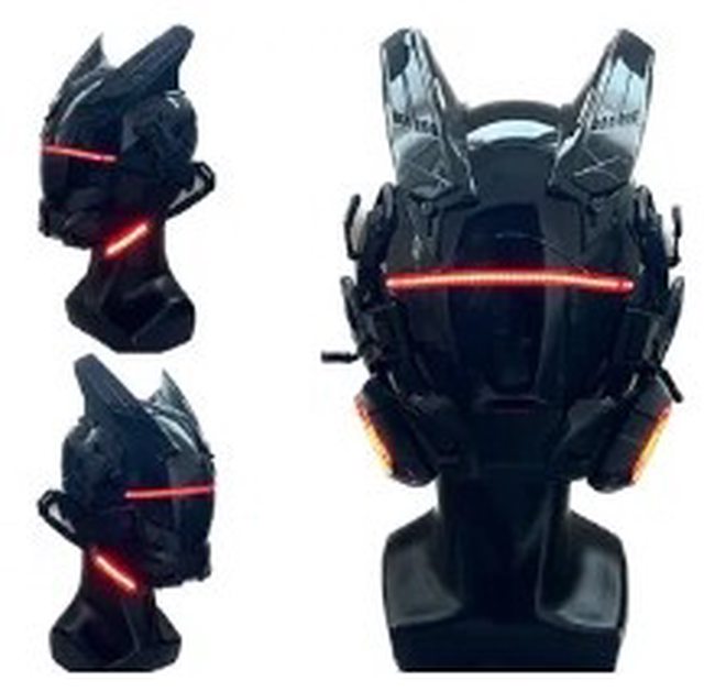 1. 全新賽博朋克面具 紅色一字燈款+側燈+頭套+工具包