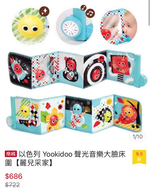 11. 物品名稱:二手以色列 Yookidoo 聲光音樂大臉床圍 二手(音效聲光都正常、但有明顯使用痕跡) 價格:150 物品實照:
