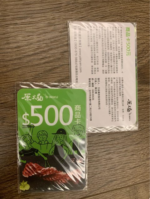 2. 物品名稱:原燒商品卡 價格:9折(面額500、有9張) 物品實照: