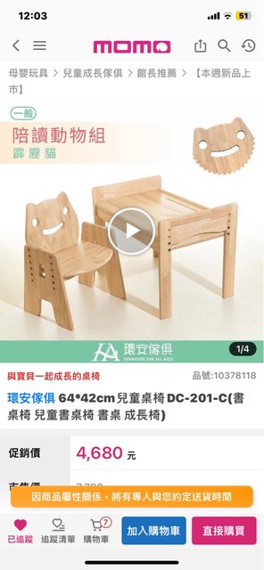 6. 物品名稱:全新環安傢俱 64*42cm兒童桌椅DC-201-C(霹靂貓) 價格:4000 物品實照: