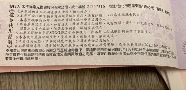 面交地點:南區樹義國小 面交時間:平日晚上(站內信討論) 1.物品名稱:遠東SOGO禮券(大遠百可使用) 價格:95折(面額500、有面額28500元) 物品實照: