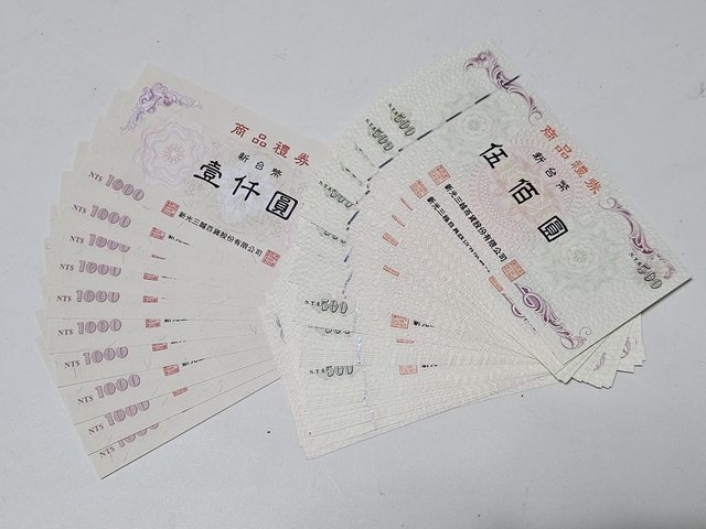 交易物品:新光三越禮券37,000(1,000*13+500*48)