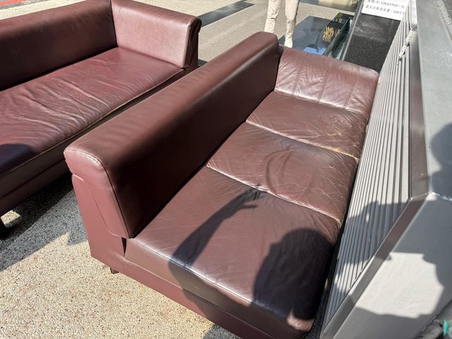 物品名稱:真皮二手沙發,限明天中午前預訂,後天以前自取,有兩張,可只取一張