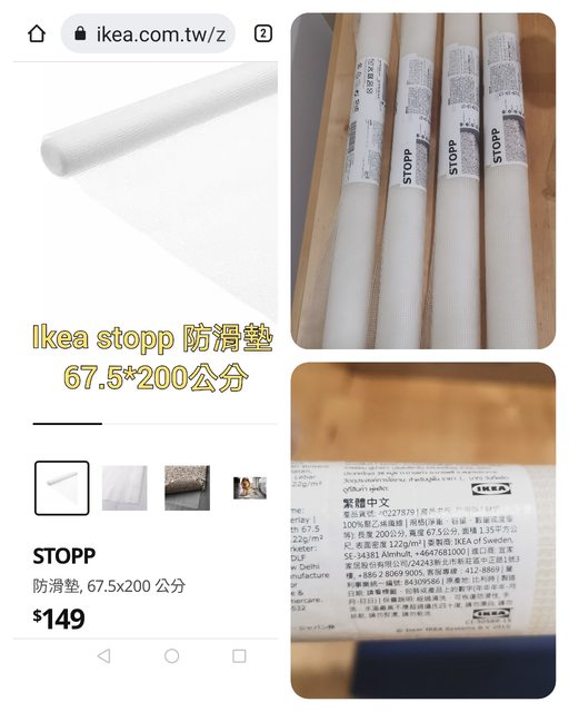 2. Ikea stopp 防滑墊 67.5*200公分 / 120