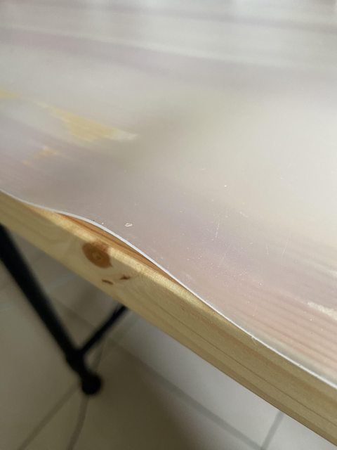 現在用的桌墊不耐熱,連3c產品邊充電都不能放,已經有多處翹起了