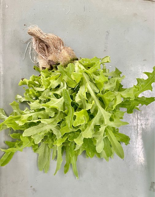 *綠海萵苣:葉片細長帶波浪狀,葉緣呈現鋸齒狀。