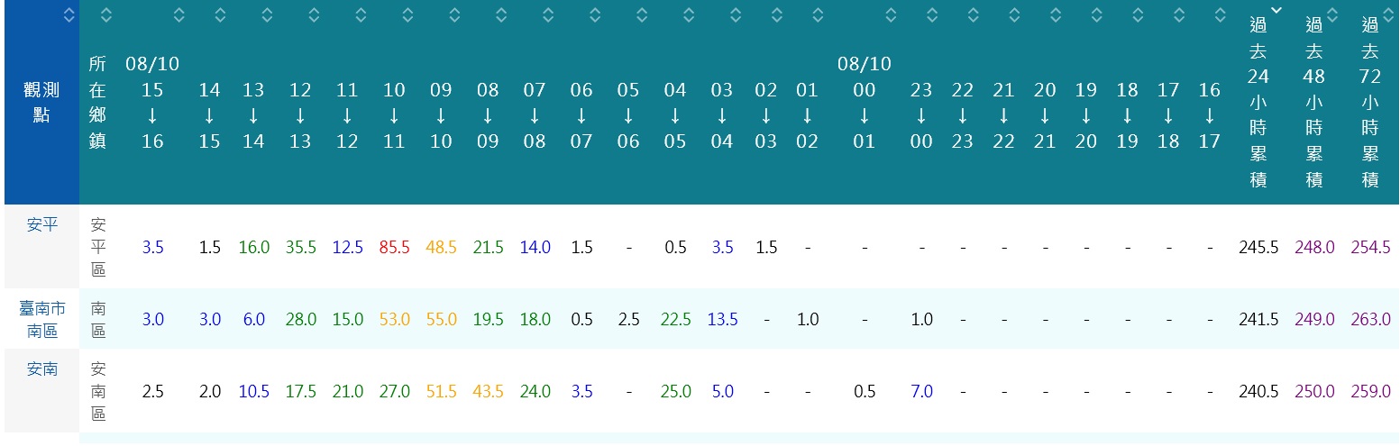 → hinajian: 其實新聞資料舊了 今天累積最多目前是安平249mm 08/10 18:14
