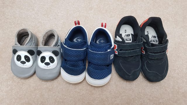 1. 左邊inch blue 12-18M,原價1500,售600,7-8成新,橡膠底因使用染塵變黑,如下方圖片