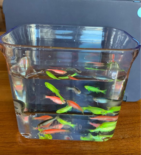 超級好養的螢光仙子魚有螢光橘、螢光綠、藍黑騎士大約20隻,皆成魚,養了約九個月了