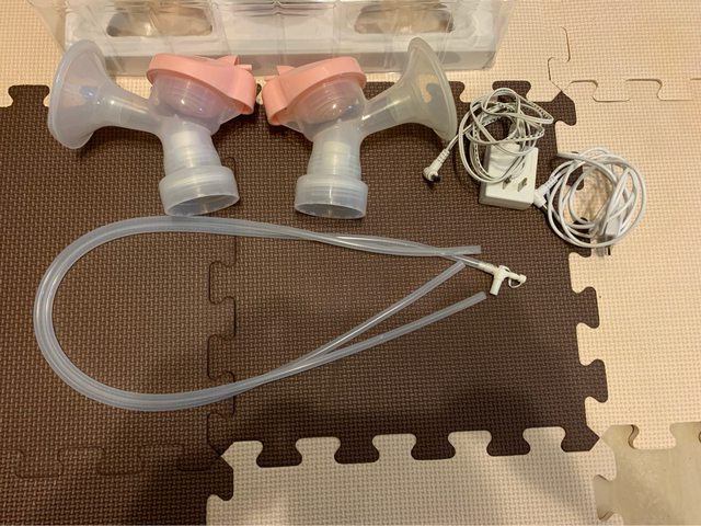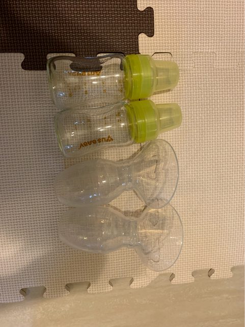 七月有多買兩組擠乳的配件(舊的加新的總共有4組輪替),奶瓶底座不見了、不影響使