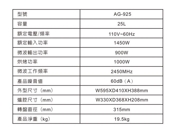 ◎SVAGO 25公升 嵌入式 微波烤箱 AG925 全新◎