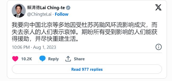 → a5687920: 蔡英文跟賴清德都打簡體字 偉哲還沒跟上嗎 08/23 08:27