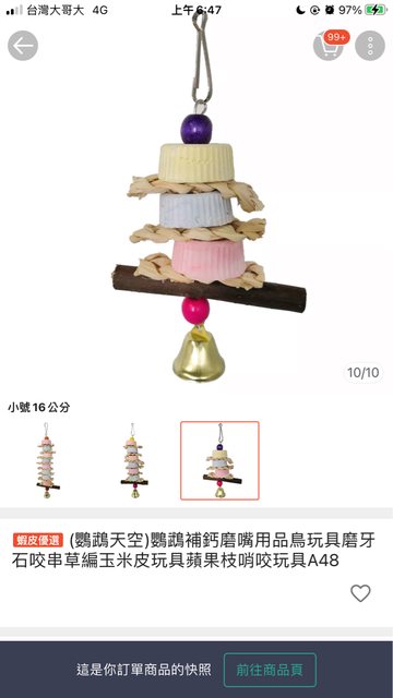 以上皆購自蝦皮「鸚鵡天空」,皆全新未使用