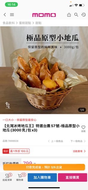 : 喜歡吃這間的小地瓜,很方便,可以連皮吃,但我冰箱冰不下,想求人合購