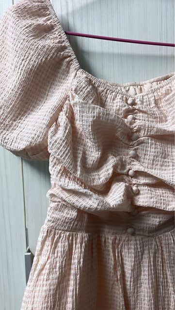 (1) 粉:可拉成平口或泡泡袖兩穿