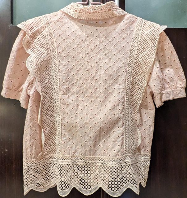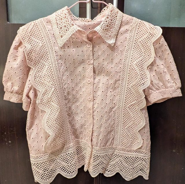 物品:鏤空蕾絲刺繡粉色短袖上衣