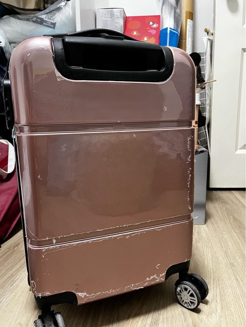 是很低調的粉色,整體使用沒問題,僅是箱外觀有刮痕,但其實是一層塑膠膜,可以撕開