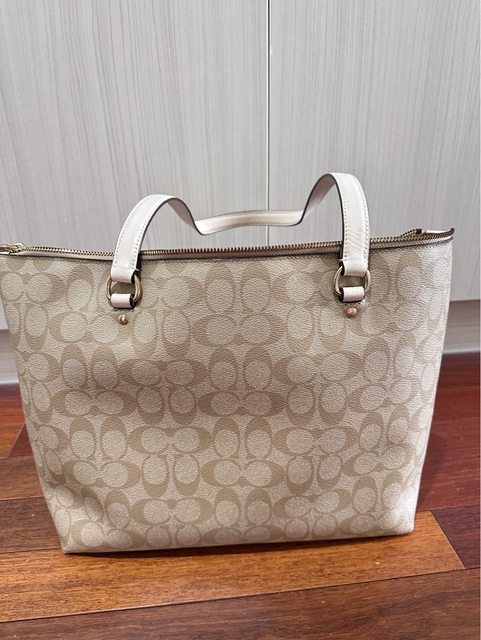 1.coach經典拉鏈托特包 米白色