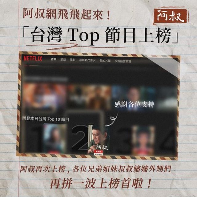 → lenovomi0403: 第一名是韓劇;《阿叔》是台灣影視作品的第一名w 10/30 19:27