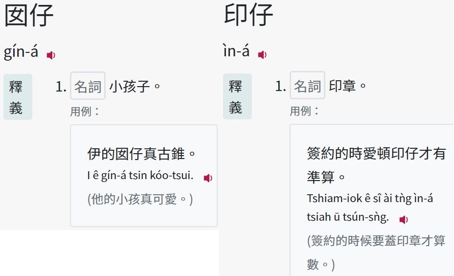 推 gmkuo: 乾仔孫,kan-á-sun,曾孫。囡有聲g加in韻,印只有in韻 12/27 14:04