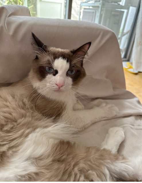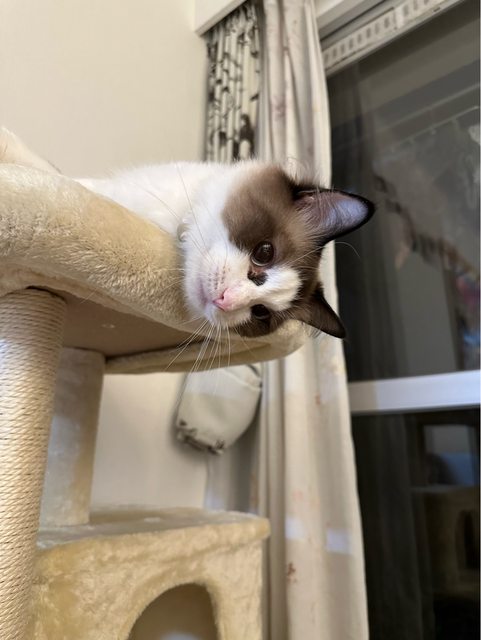 送養人說是布偶但毛好像沒有網路圖那麼多,不知道是不是混血,可愛又乖,只能說品種