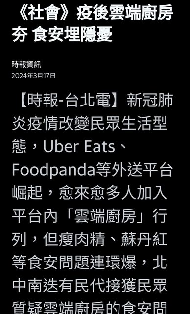 是的,吃出問題現階段沒有法規可管,執政者漠不關心,蠻恐怖的。(啊肥正在打開外送app……)