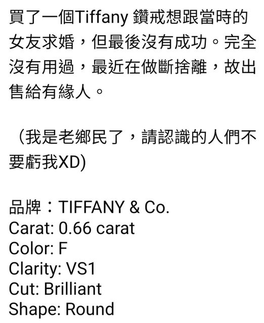 → nondelivery : 會買鑽戒的 不是錢太多就是智障 111.243.85.84 05/03 00:26