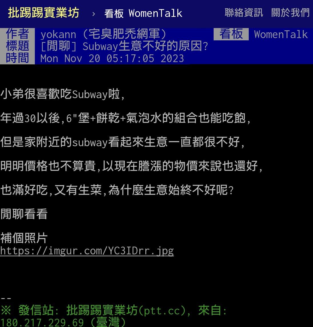 → Anda : 美國就只有底層階級的在吃subway… 36.224.204.92 05/03 12:41