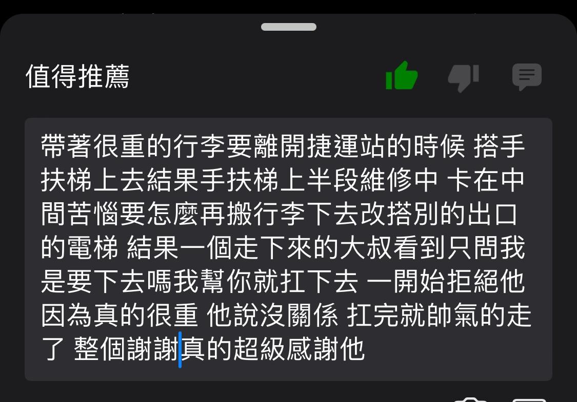 推 bq99 : 謝謝多年前想幫忙揹我爸上手扶梯的 27.242.134.182 05/07 18:51