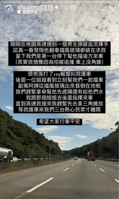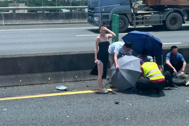 車駕駛則好心下車將肇事駕駛拉到分隔島,警消到場後也幫忙撐傘遮陽。其中一名在車輛後
