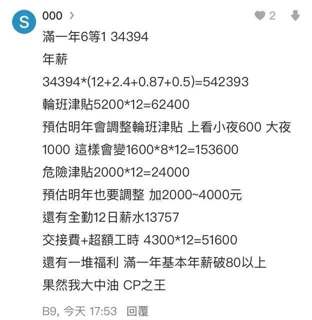 噓 jess851007 : 原po應該不是中油的 實際上沒領這麼 42.73.89.138 08/28 11:41