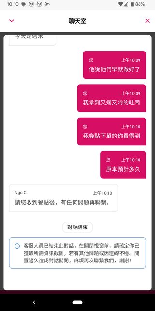 推 sammoon: 這客服處理有問題 我跟熊貓客訴很多次 他 101.12.90.52 06/18 12:36