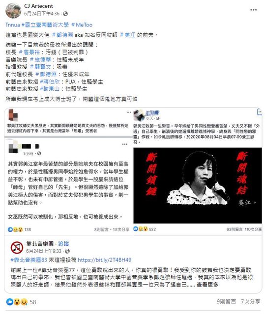 台南藝術大學國樂系2教授爆發#metoo事件醜聞,當事人皆否認,