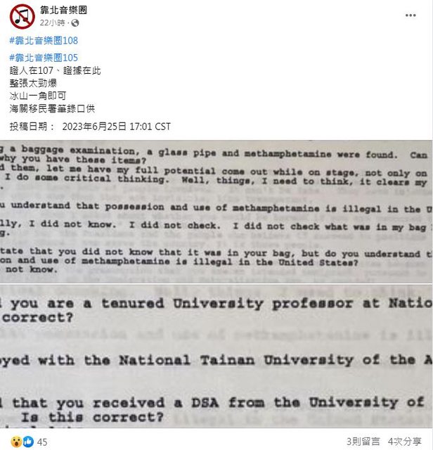 靠北音樂圈 顧寶文 毒品 海關移民署筆錄口供