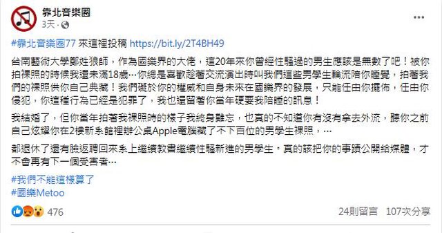 靠北音樂圈 鄭德淵 性侵性騷擾拍學生裸照 有未成年受害