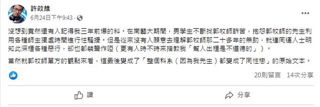 鄭姓教授遭指控是狼師,有匿名網友自稱被害人,