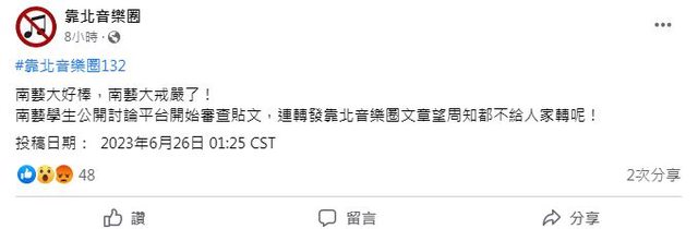 《南藝學生公開討論平台》近日有網友不斷分享爆料文,