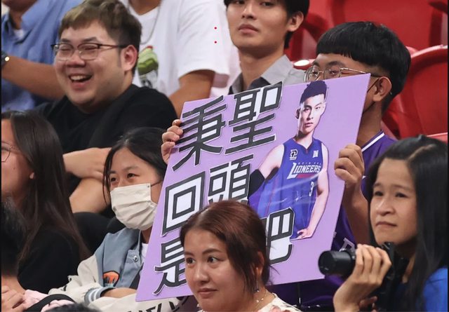 獅球迷高舉「回頭是岸」看板,但他不受影響,攻下全隊最高25分,助中華藍以87比74擊