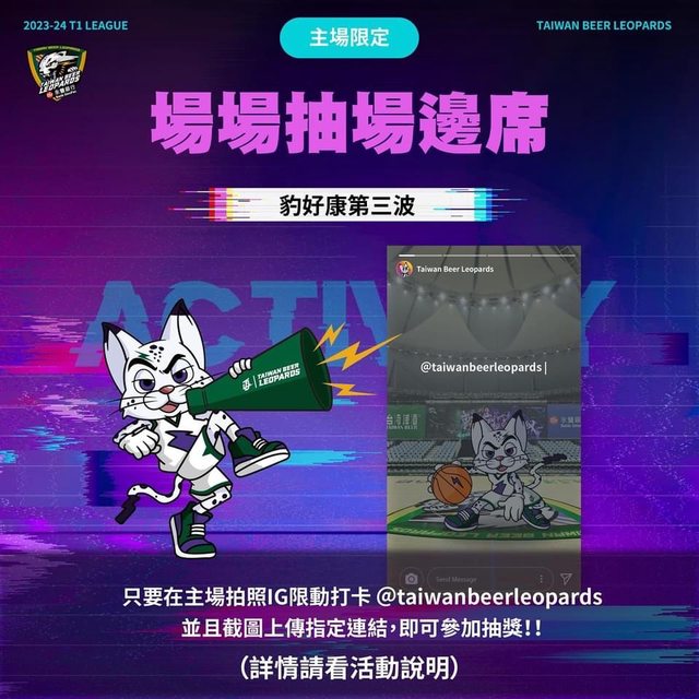 ❶主場比賽當天,在球場內拍照上傳IG打卡,需標記@taiwanbeerleopards