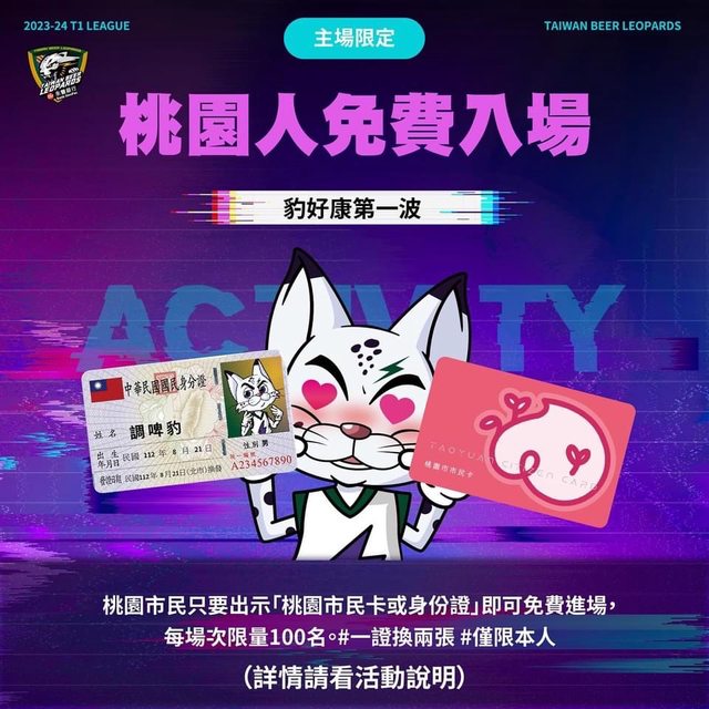 標題[情報] 雲豹主場限100桃園市民持身分證免費入場
