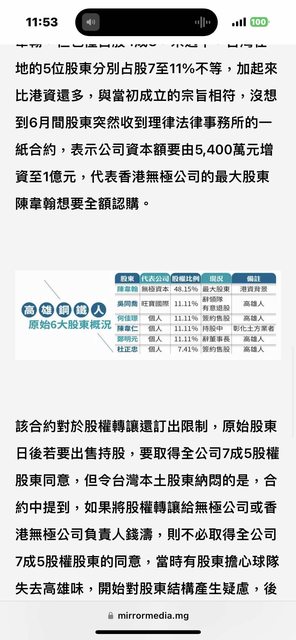之前鏡週刊也報導有一個詭異的合約 只能無極或錢濤增資