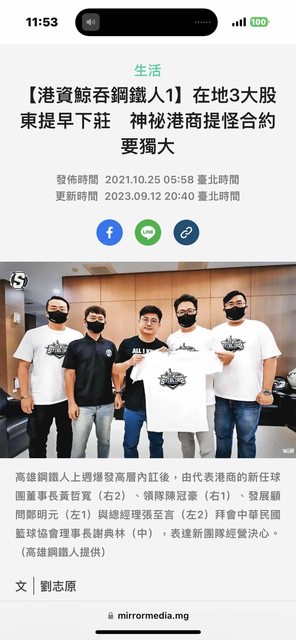 : P.LEAGUE+高雄鋼鐵人近期風波不斷,昨球團才發表新聞稿,針對聯盟日前要求高雄鋼鐵人球隊公司(高雄育樂股份有限公司)補充股東變更書面文件一事,已於上周五完成補件。然而今(22日)創始股東們也發聲明回應,強調高雄育樂公司在2021年10月04日的董事會中,換上新管理層,董事長黃哲寬與監察人陳韋翰,同時要求接手球隊管理與經營,自當日起,創始股東們就沒參與任何球隊經營的決策。