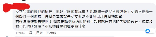 噓 dapei0702 : 你可以坦蕩說自己就是已婚外遇約砲但跟打球兩件事 11/30 13:34