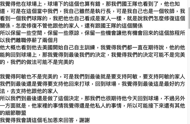 噓 mumuwei : 太極球團阿 滿口仁義道德 之前其他球員有爭議時 實 12/01 11:45