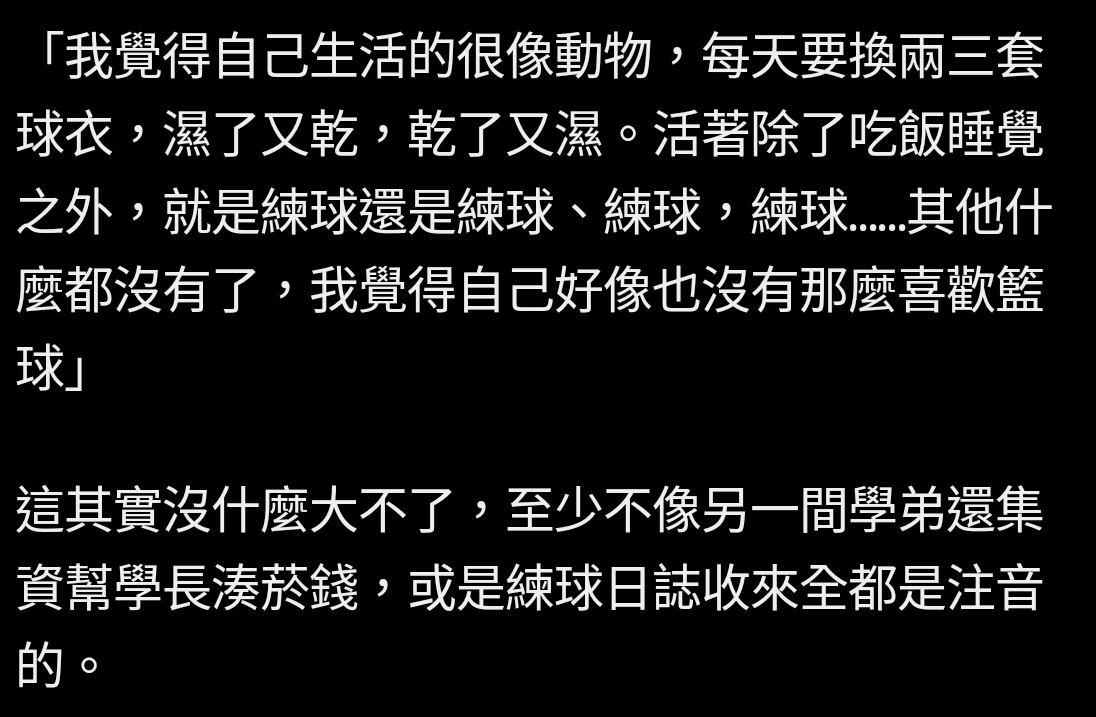 → Asuero : 體育班的特殊成長環境,而且社會咸認剝奪球員終身再 12/01 18:09