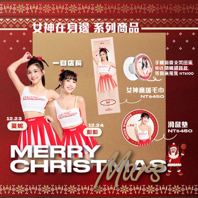 歡度聖誕週,臺北戰神也推出「女神在身邊」系列商品,包含應援團長Rina與Taishin Wond