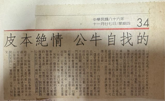 推 selamour : 當時報紙上的比數 球隊名稱是用書法體印的 酷!12/28 13:13